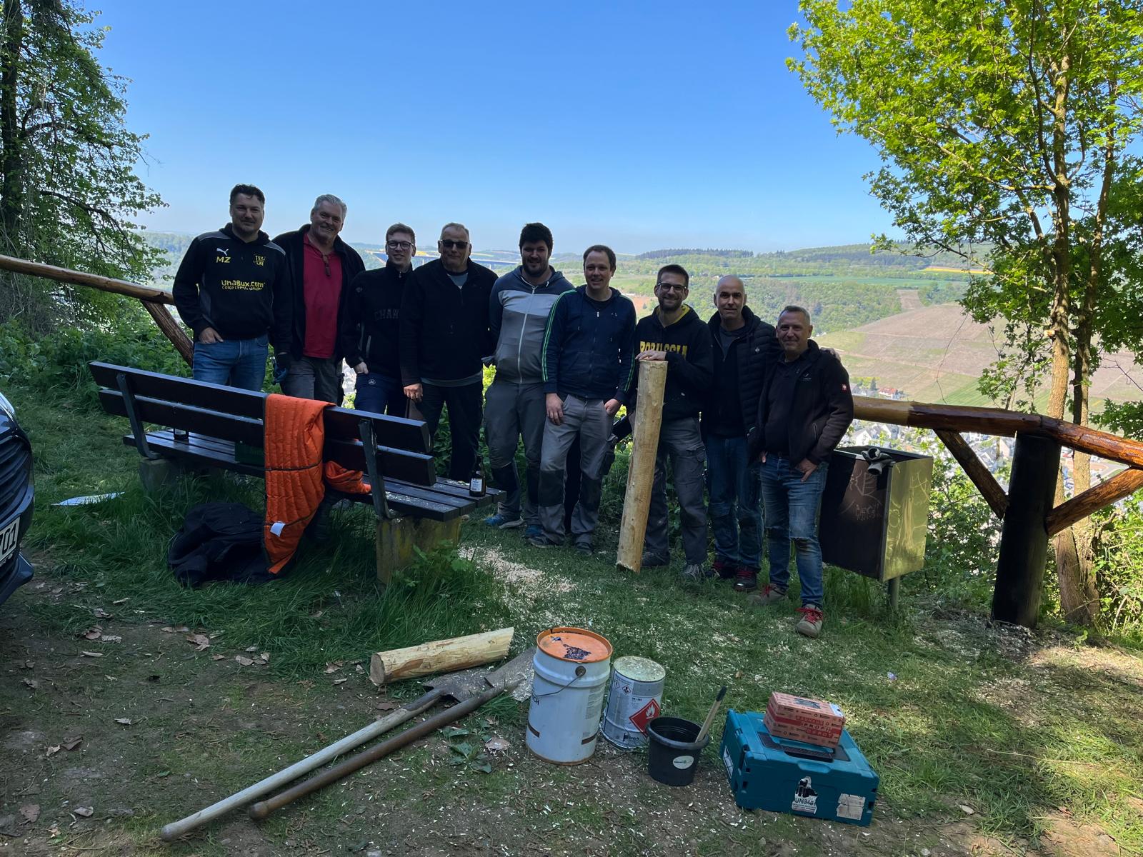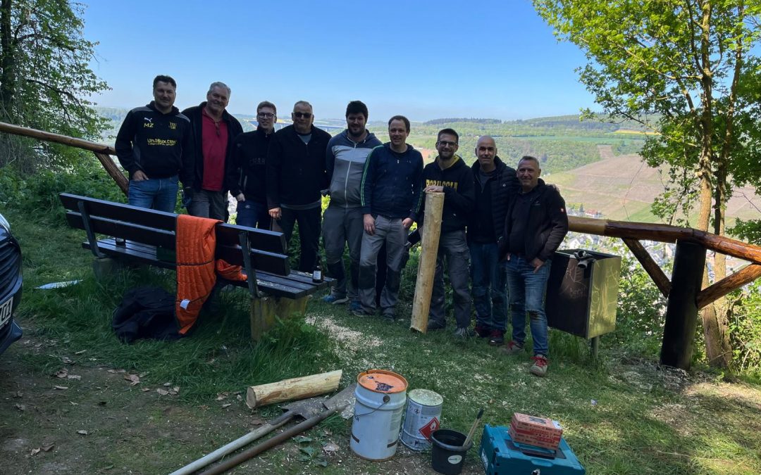An der Sitzgelegenheit entlang des Weges war das Geländer nicht mehr sicher. Die Heimatfreunde Lay haben es erneuert, sodass der Platz jetzt wieder gut und sicher genutzt werden kann.